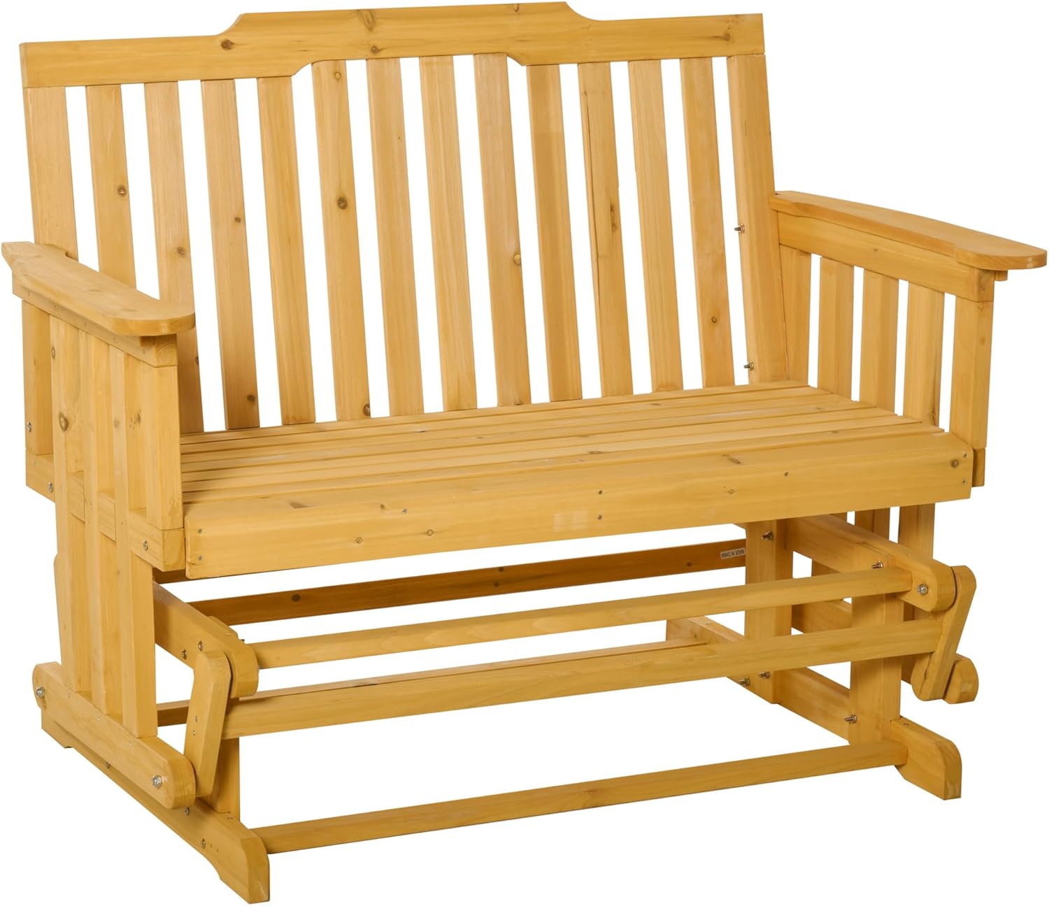 2 Person Patio Swing Glider Bench with Quick Drying and Wide Armrest, Wood Rocking Chair Loveseat for Backyard GPorch, Natural