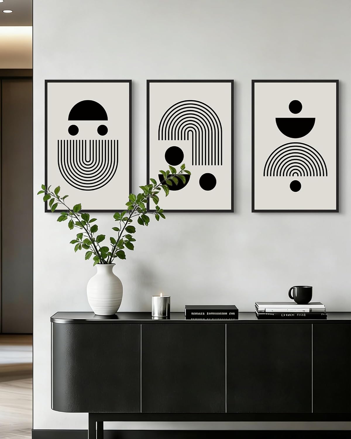 Boho Aesthetic - Enhance your home with this 3-piece black abstract bohemian wall art set. Perfectly designed for bedrooms, living rooms, and kitchens, these framed canvas prints add a chic minimalist and boho-inspired touch