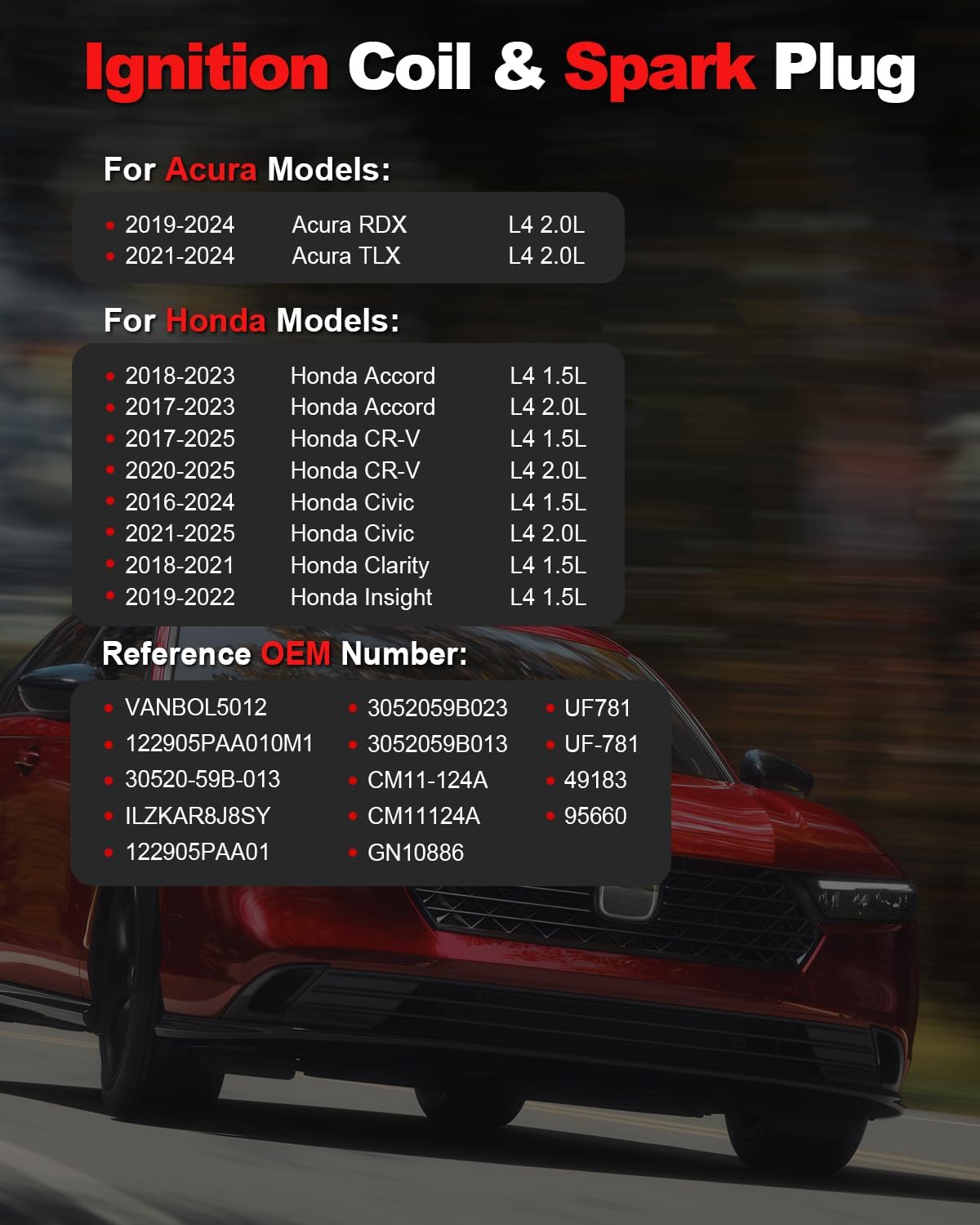 | Included Components | 4pcs Ignition Coil Pack & 4pcs Iridium Spark Plug |