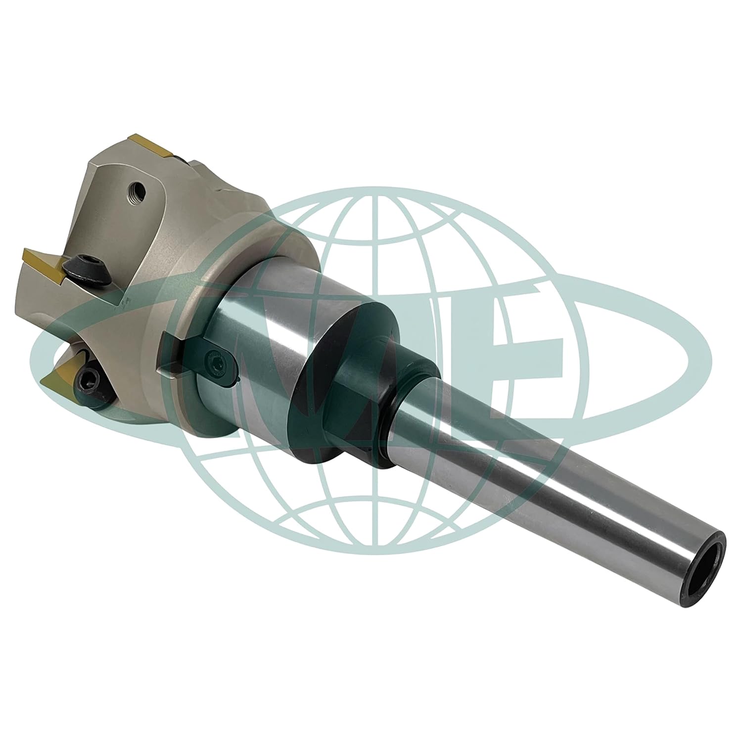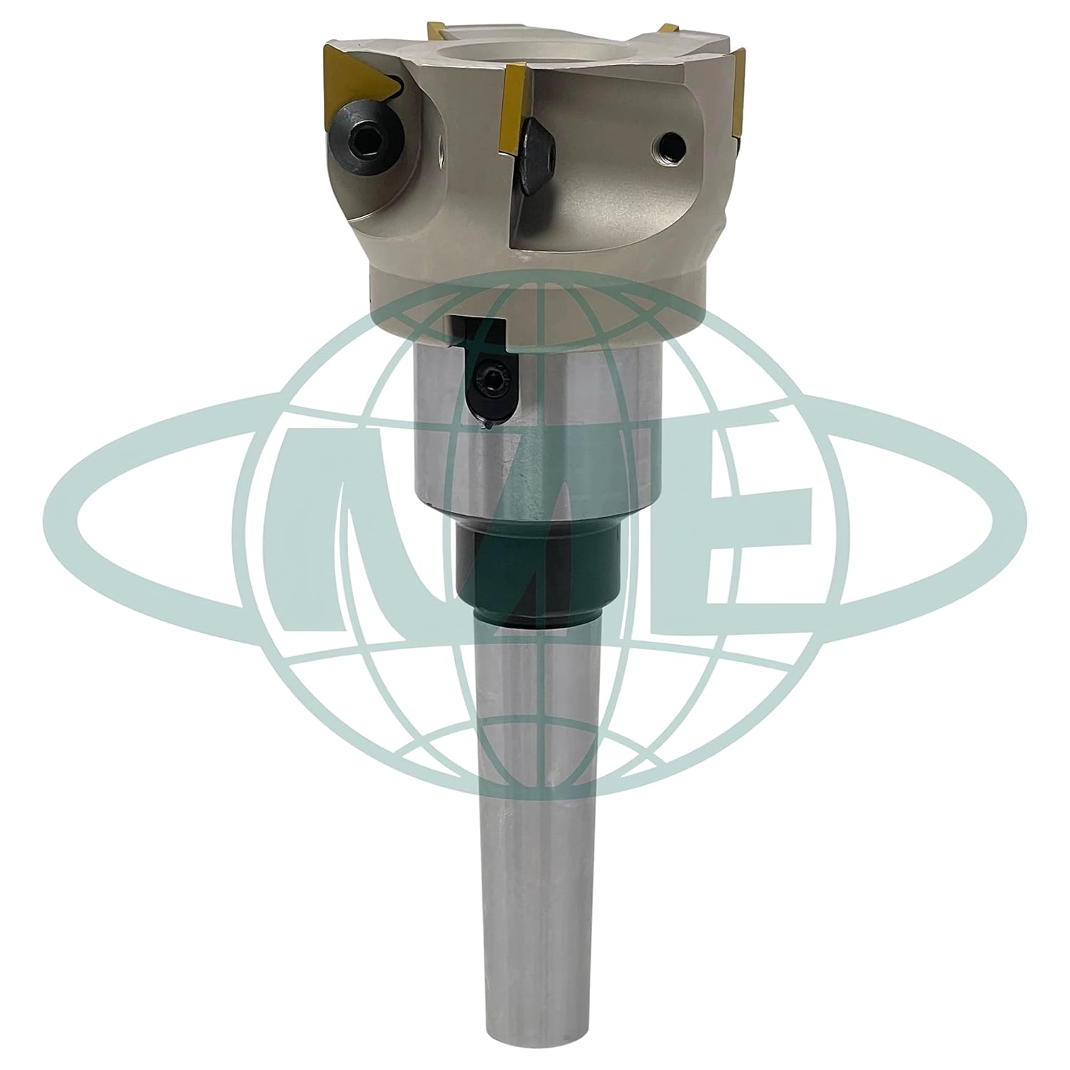 * 3" 90 degree indexable face milling cutter with MT3, Morse Taper 3 Arbor, with 5 TPG322 carbide inserts. * 1/2"-13 draw bar threads of MT3 arbor * 5 flutes. * 1" bore. * Nickel plated finishing * Extra carbide inserts available: TPG322 Tin coated carbide inserts------$1.95/each--minimum order: 10 pcs