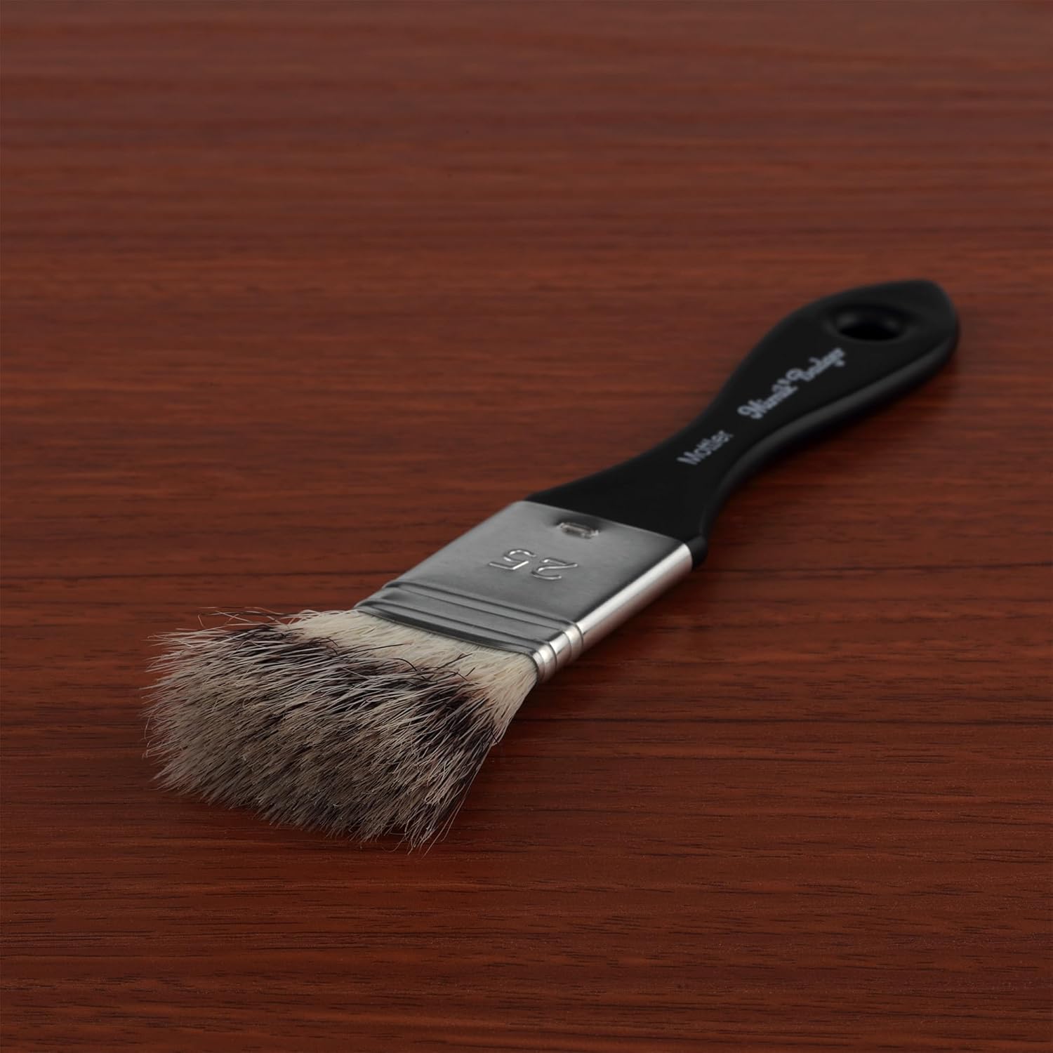 Animal-Friendly Mottlers Outperform Natural Badger Hair! Mimik Badger Mottler Brushes contain a groundbreaking synthetic fiber that mimics Natural badger brushes. The filaments are thin at the root and thicker at the tip, just like a badger’s fur. The slightly wavy nature of the filament creates a gentle resistance Perfect For bending and dry-brush techniques. Use the mottler shape to Paint a large background, apply a glaze, or varnish your work.