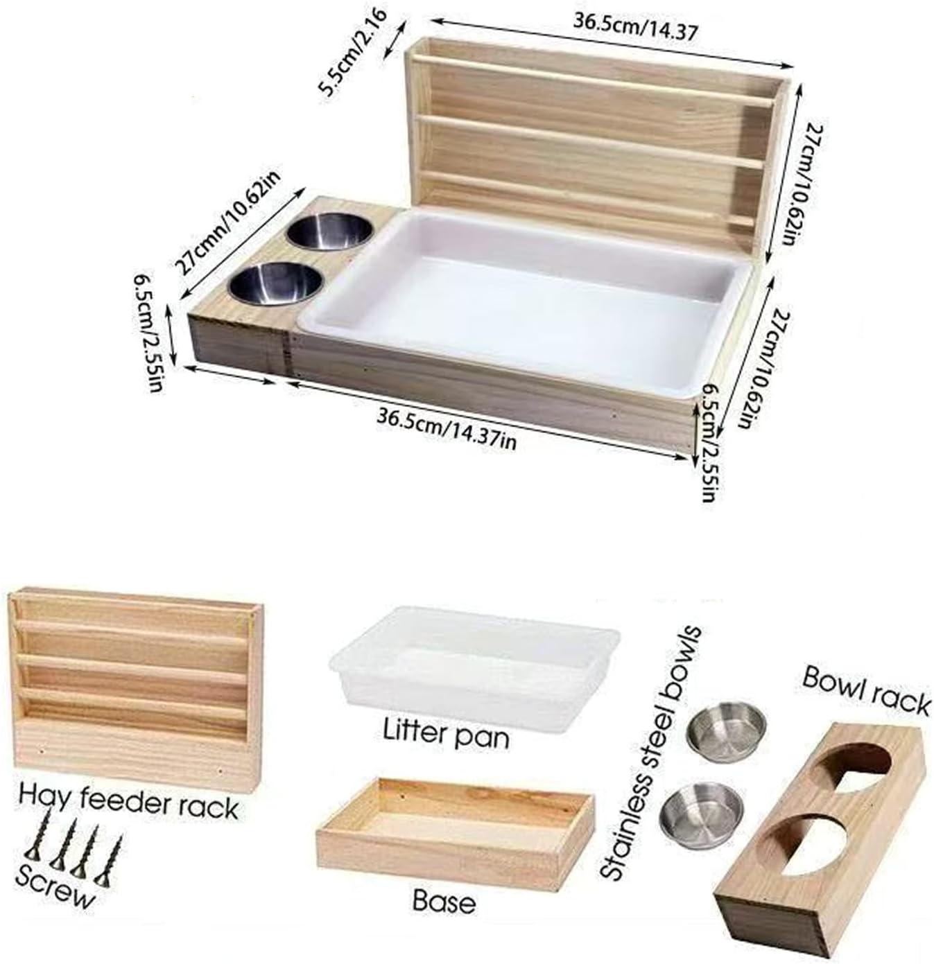 1. 3 IN 1 CONVENIENCE - This hay feeder set combines a hay holder, box and food bowls into one convenient unit, making it ideal for your spaces and reducing clutter in your pet's living room. 2. SPACIOUS CAPACITY - Designed with a large capacity, this grass food rack can hold a large amount of hay, allowing you to spend less time refilling and more time enjoying moments with your pets. 3. Stable and Safe: With an anti-tip structure, our hay feeder with horse tumb effectively prevents hay spillage, keeping your pet's living space clean while promoting positive eating habits. 4. DURABLE DURABILITY - Made of high-grade solid wood, our rabbit hay feeder is stable and safe for your pets. Its sturdy construction ensures long-lasting use for years to come. 5. VERSATILE PET USE - Not for rabbits! This multifunctional hay manger is suitable for various small pets, including the guinea pig, making it a versatile addition to your pet care tools. Special: Item Type: Medingen Wooden Heedermaterial: Wood+Plastic+Stainless Steel Wooden box size: approx. 36.5x27x6.5cm/14.37x10.63x2.56in How to use: Use Directly packagelist: 1 x Wooden Storage Box 1 x Plastic Box 2 x Unexpected Steel Bowls 4 x screws br/>2 x sancos br/> p> > >