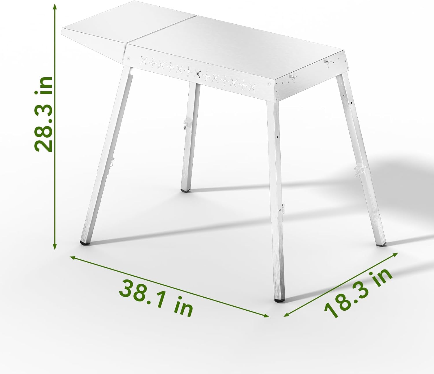 The outdoor bbq grill table is made of 100% 304 thickened stainless steel. It can support up to 300 pounds, not easy to deform, waterproof and heat-resistant. It can be used both indoors and outdoors.
