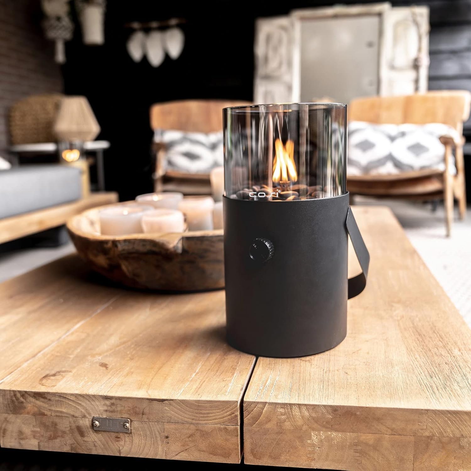 The Cosiscoop Original black smoked gas lantern is a unique ambiance creator for both your garden and indoors. This elegant table model can be placed anywhere thanks to its convenient carrying handle. Gather friends and family and enjoy evenings filled with atmosphere, warmth, and coziness.
