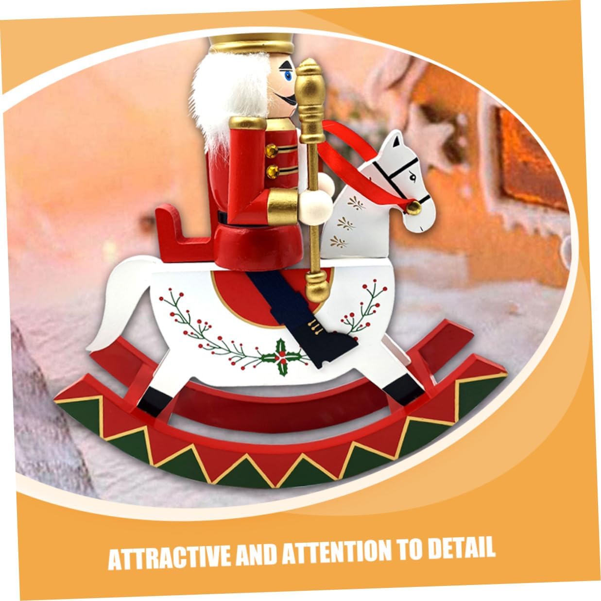 Package List 1 x wooden horse nutcracker Characteristics - Size: 30.50X26.00X9.20cm/11.99X10.22X3.62in -Christmas ornament: enhance your holiday decor with this rocking horse nutcracker, designed to bring festive cheer to any setting xmas nutcracker -Ideal for desktops: this ornament is ideal for placing on desktops, adding a touch of elegance and festivity to your workspace or home xmas tree ornament -Material:Wooden -Handmade excellence: each nutcracker is meticulously handmade, ensuring quality and intricate detailing in every piece christmas nutcracker statue -Product Info:Nutcracker ornaments -Thoughtful option: this ornament makes a wonderful christmas present, offering a blend of tradition and charm that will be appreciated by all nutcracker table decorations -Royal soldier inspiration: the design is inspired by royal soldiers, making it a unique and attractive addition to your christmas decorations nutcracker soldier ornament - Goods Informationnutcracker christmas decorations Nutcracker figures are a timeless addition to any Christmas collection.nutcracker ride horse Their classic design and sturdy construction make them ideal for both decorative purposes and as a fun for to enjoy during the holiday season.wooden christmas decoration These wooden nutcracker ornaments can be displayed on your desk or as part of a festive shelf arrangement