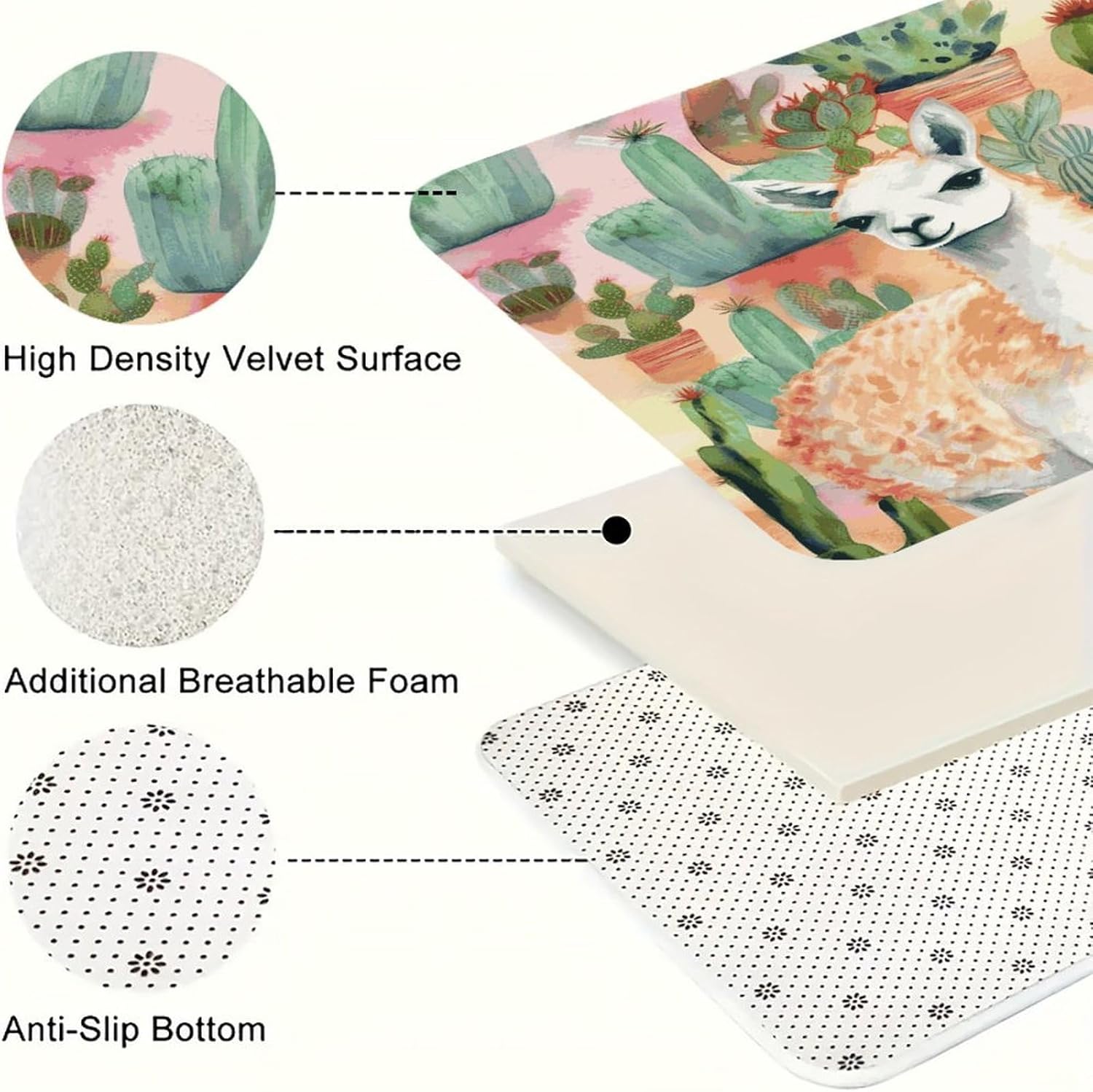Discover the perfect blend of comfort,practicality,and style with our Anti-Loose Fiber Flannel Kitchen Set of Three Items.Meticulously crafted using Anti-Loose Fiber Flannel,these mats offer an exceptionally soft and cozy surface underfoot.The specialized fabric construction minimizes fiber shedding,ensuring the mats retain their plush quality over time.Engineered as effective Anti Fatigue White Alpaca Watercolor Painting And Cactus Mats,the generous thickness provides genuine relief,making extended periods of standing while cooking or cleaning noticeably more comfortable.The set's comprehensive coverage–featuring a longer Cushioned Runner Rug for extended areas,a middle Comfort Kitchen Mat for central prep zones,and a shorter Floor Mat for in Front of Sink–ensures your key kitchen spaces are protected and cushioned.Their utility extends beyond the kitchen,serving well as reliable Thick Kitchen Floor Rugs in bathrooms,mudrooms,or covered outdoor areas.This set of Breathable White Alpaca Watercolor Painting And Cactus Rugs is designed to be both practical and visually appealing.Choose from designs that evoke the cozy familiarity of a Farmhouse Mat or opt for the clean lines of Modern Kitchen Mats.The rich textures and vibrant patterns act as beautiful Home Decoration Rugs,adding a layer of warmth and personality to any space they grace.Whether you're aiming for a classic look with Vintage Rugs or a contemporary update,these mats seamlessly integrate into your decor,transforming functional areas into stylish and welcoming parts of your home.